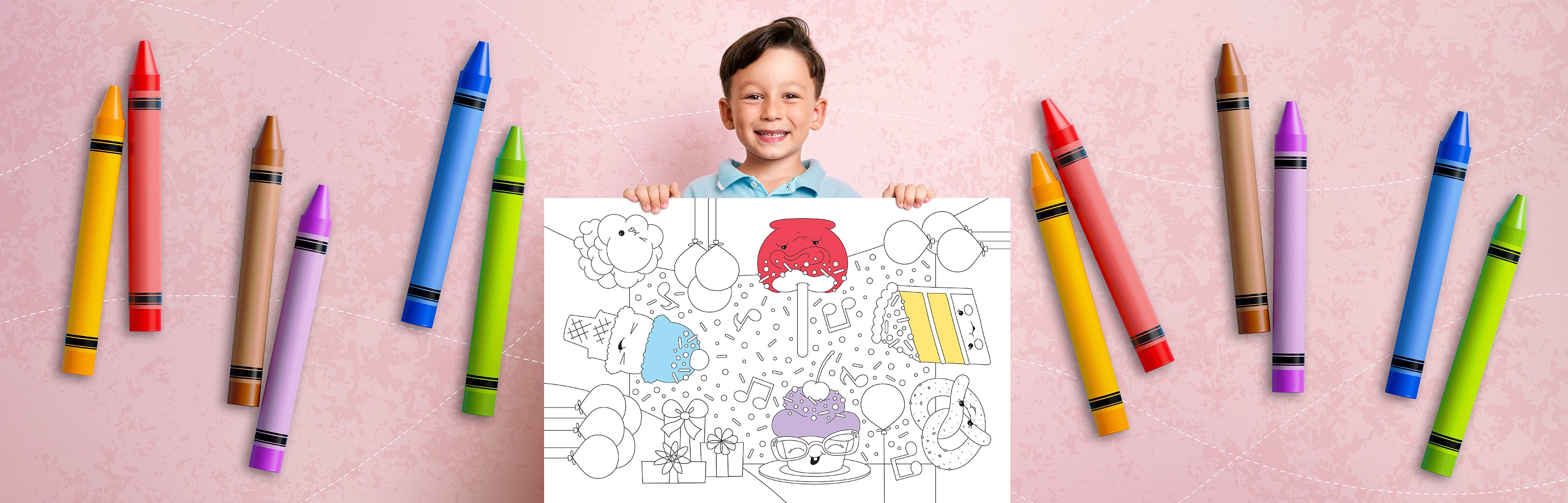 Our group coloring posters make the perfect craft activity for your next birthday party, classroom project or kid's crafting event. They are uniquely designed so every kid has something fun to color. It's an easy, no-mess coloring project kids of all ages can do with friends while learning cooperation, sharing and teamwork skills.