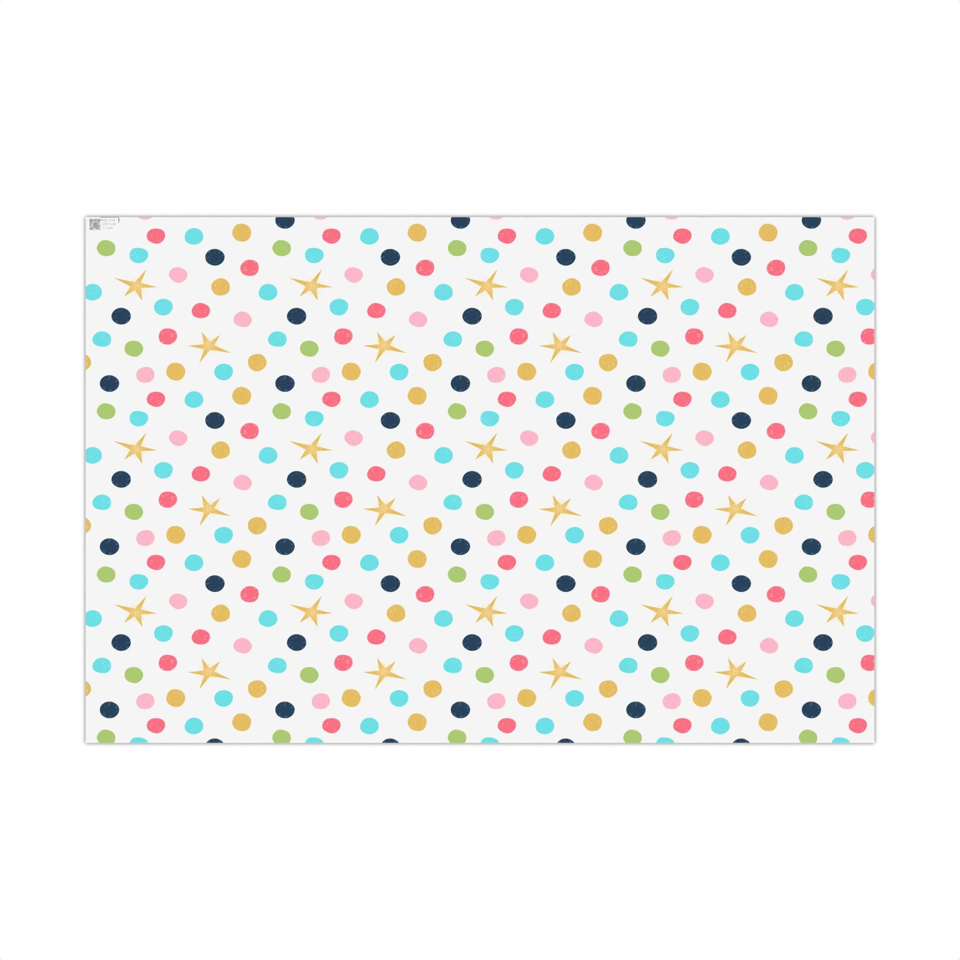 This bright and colorful Christmas tree ornament wrapping paper is sure to make your gift giving season extra festive. The fun polka dot pattern is on a white background with magical twinkling gold stars. This joyful design was created with love by artist Lisa Allen Shropshire in her rustic, dry-brush style so the quality really shines through. Place your order today!